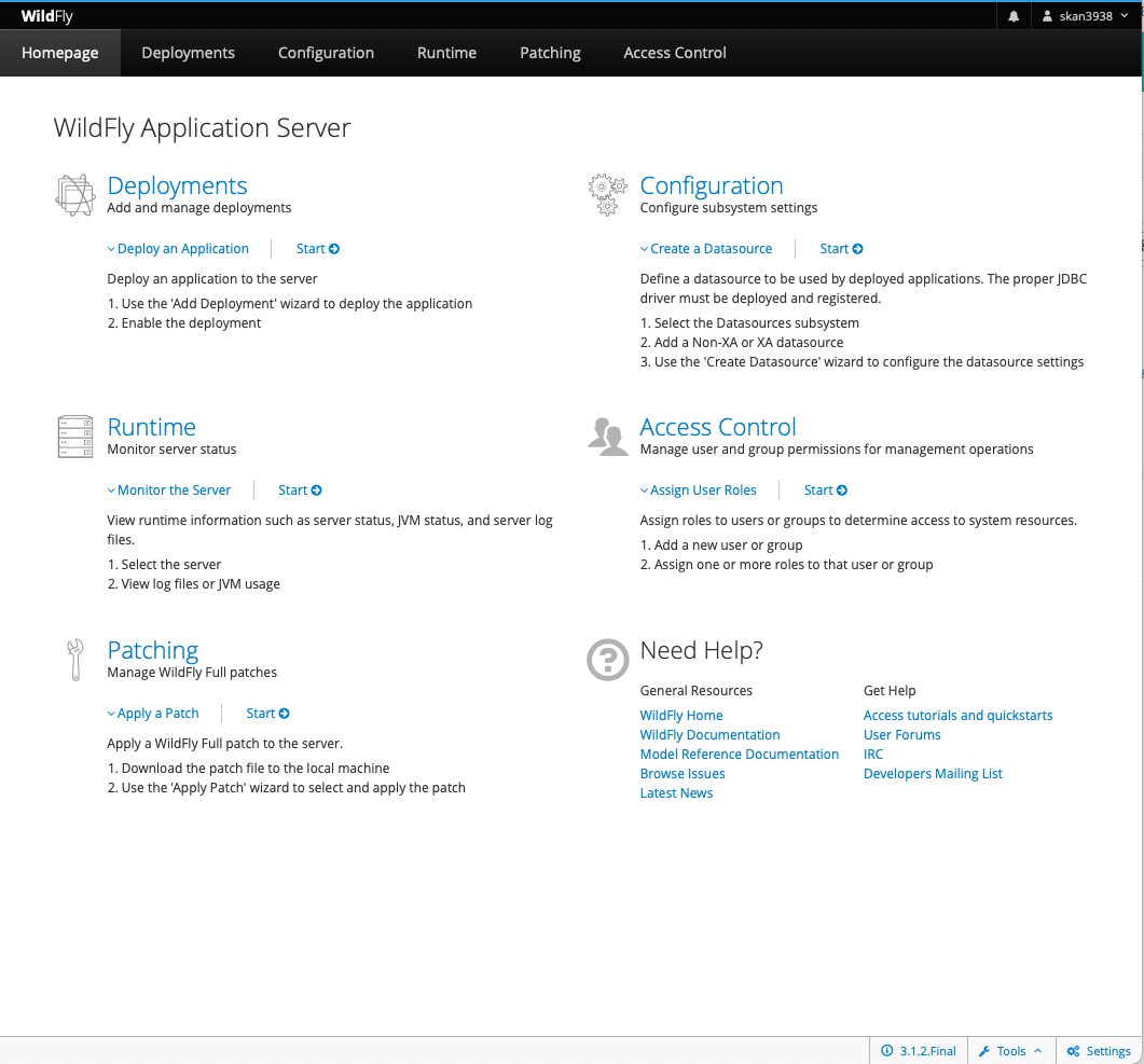 | # Authenticating against security realm: ManagementRealm # Username: # Password: |